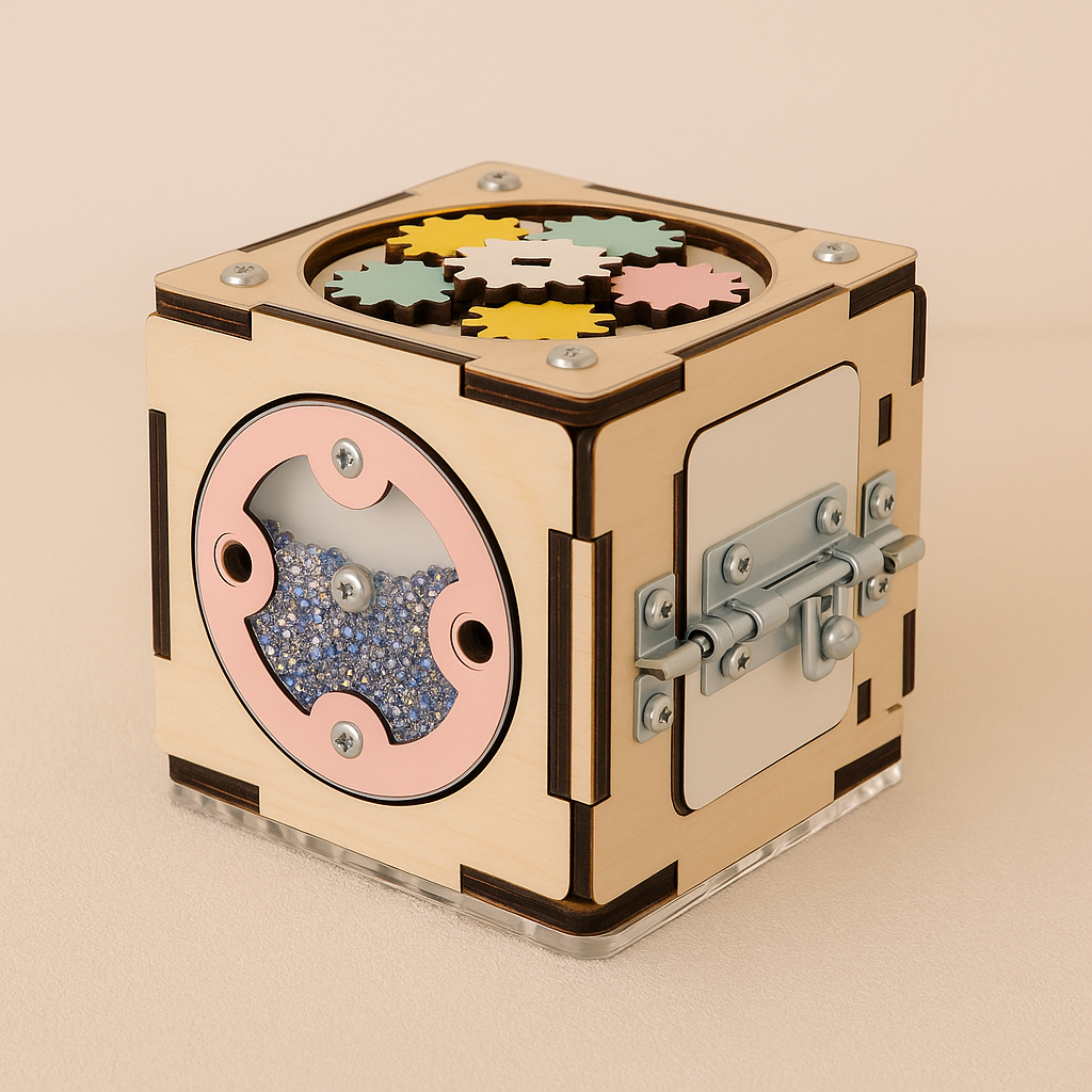Dankzij het handige formaat is de kubus perfect voor thuis én onderweg – ideaal voor nieuwsgierige peuters die graag nieuwe dingen ontdekken.