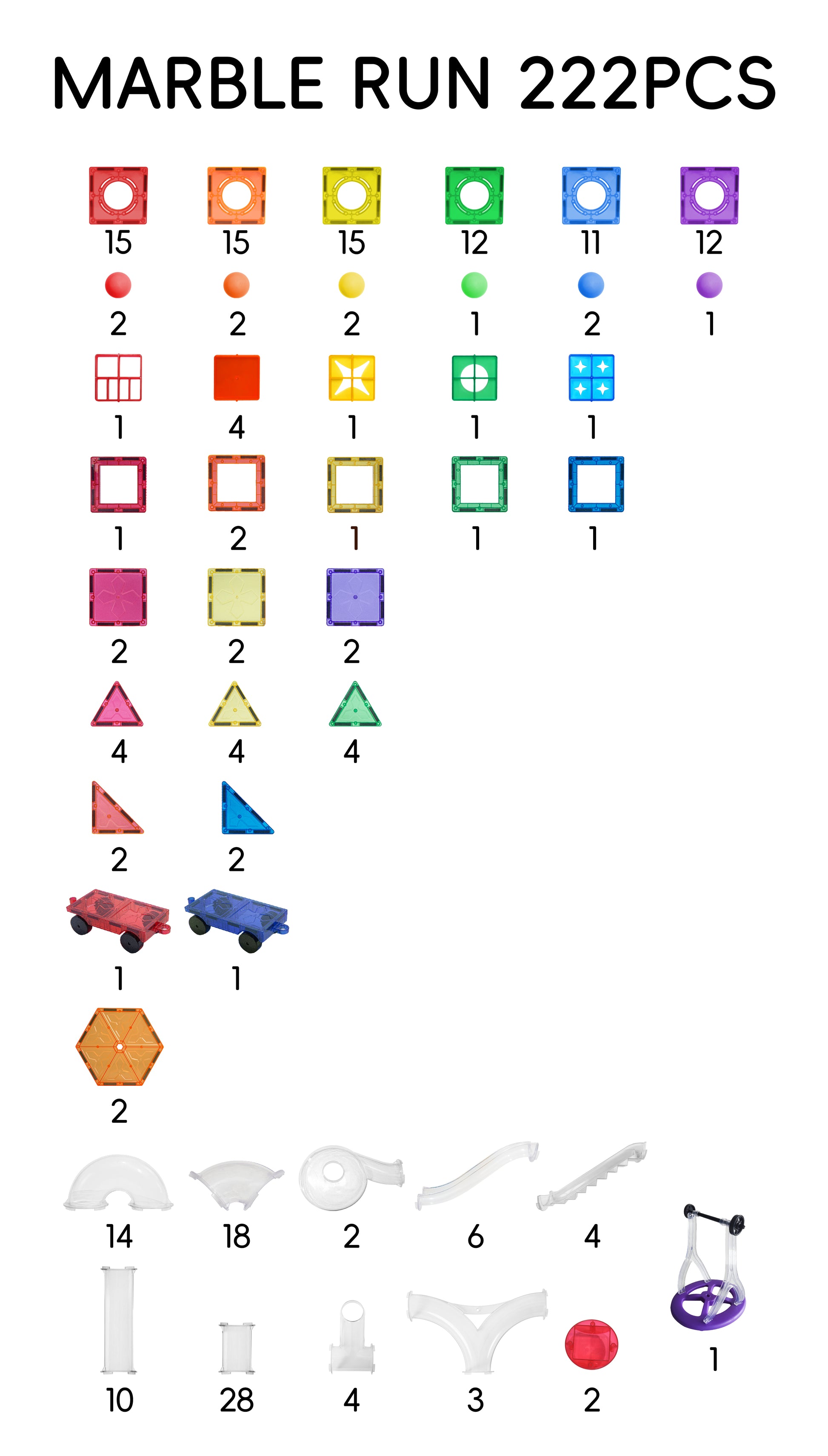 Beleef magische momenten met de magnetische bouwset, speciaal ontworpen om kinderen spelenderwijs te laten bouwen, ontdekken én leren. Met maar liefst 222 onderdelen, waaronder tunnels, hellingen, wielen en kleurrijke vormen, bouwen kinderen eindeloze knikkerbanen en voertuigen.