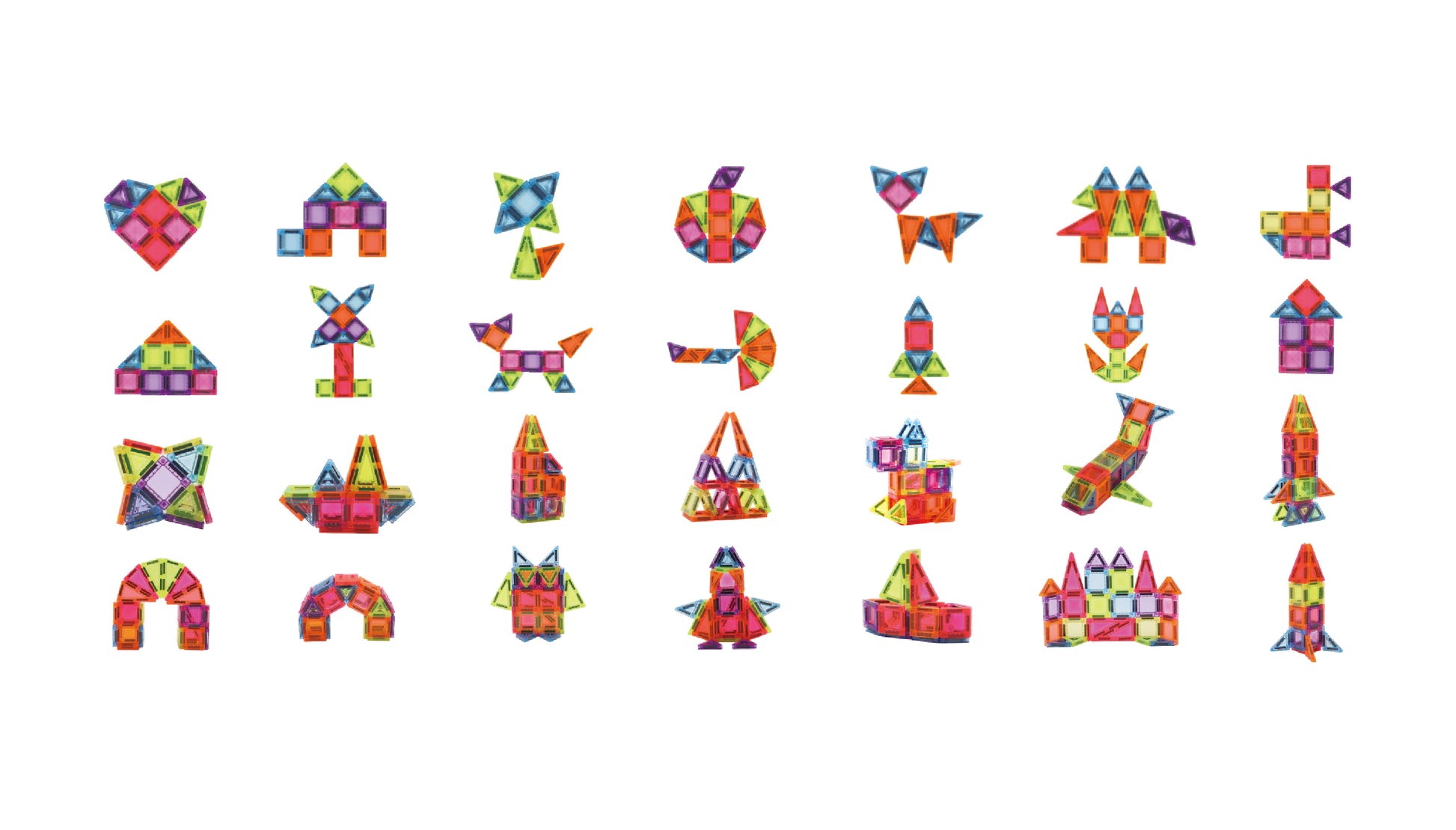 ✔ 100 onderdelen – inclusief vierkanten, gelijkzijdige en ongelijkzijdige driehoeken