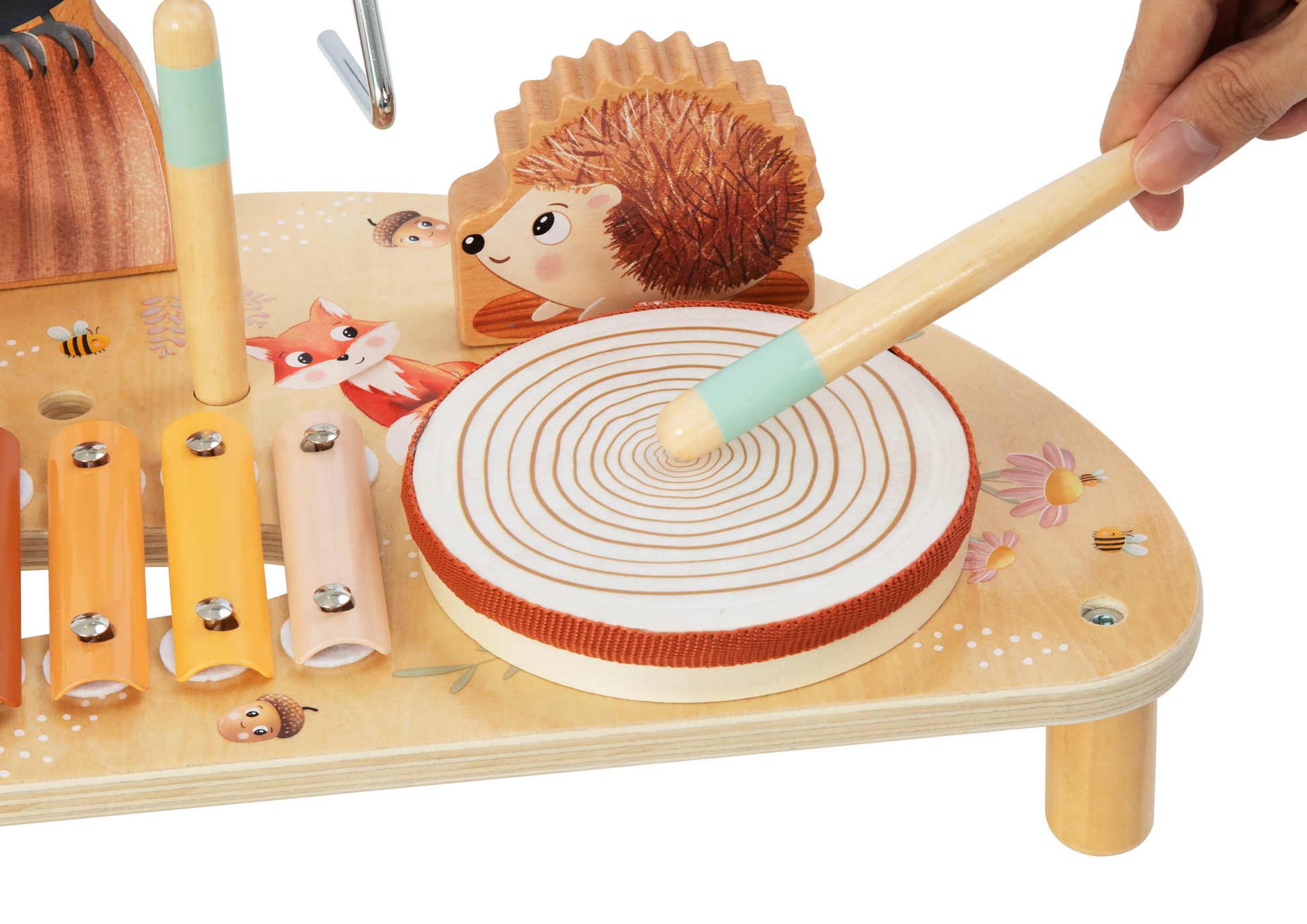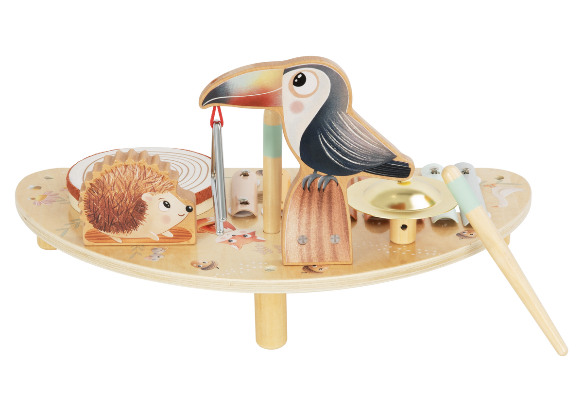 De compacte tafel is ontworpen op kinderhoogte, zodat zelfs de kleinste muzikanten zelfstandig kunnen ontdekken, spelen en optreden voor hun knuffels of familie. Deze muziektafel stimuleert zintuigen, fijne motoriek, hand‑oogcoördinatie én de liefde voor muziek vanaf jonge leeftijd.