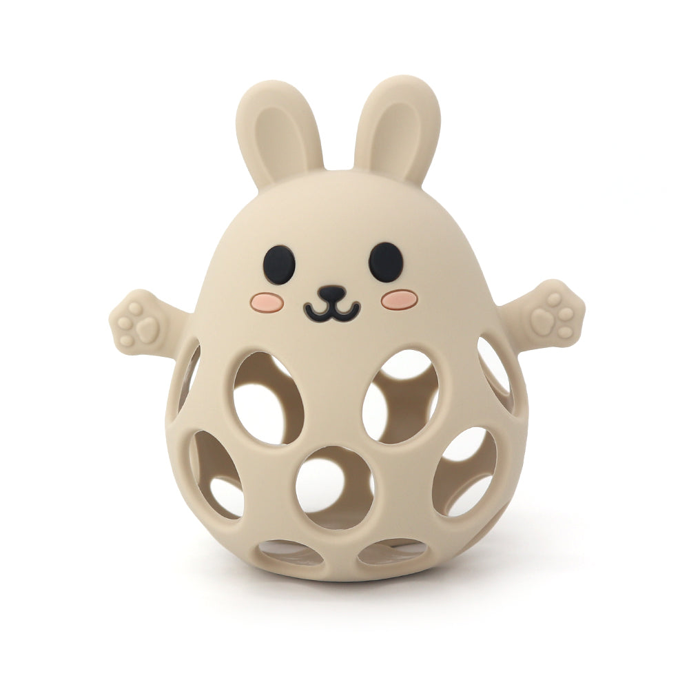 1× Silicone Bunny Ball – licht, zacht en ideaal voor grijpen, rollen en eerste bilaterale coördinatie.