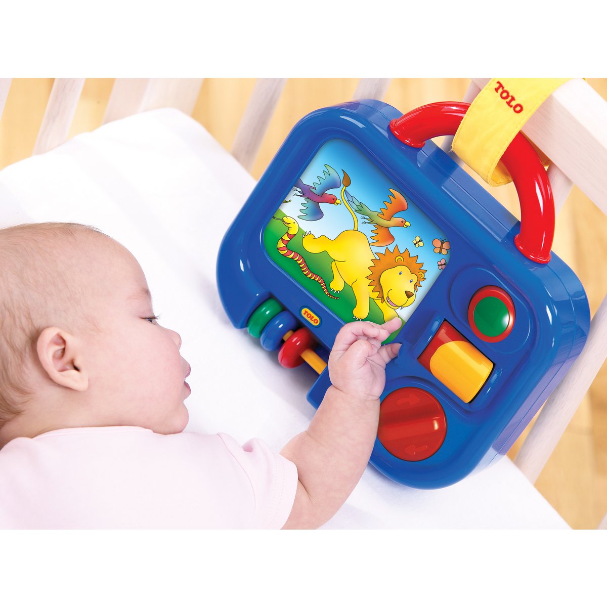 Laat je baby spelenderwijs genieten van muziek, beweging en kleuren met de Tolo Classic Muzikale Speelgoed TV! Vanaf de allereerste maanden stimuleert deze kleurrijke speelgoed-tv de zintuigen van je kleintje. Met bewegende beelden, vrolijke melodieën en verschillende knoppen is dit het ideale speelgoed om motoriek, gehoor en visuele waarneming te ontwikkelen.